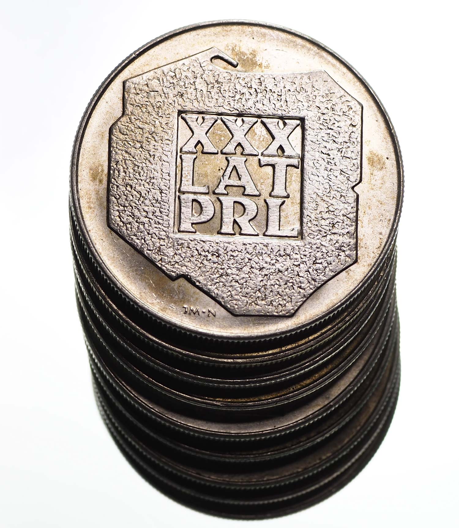 Zdjęcia przykładowe. Monety standardowe, w różnych stanach zachowania . Srebro 625, waga 14,5 g x 10 = 145 g. Katalog: Fischer OB 103.