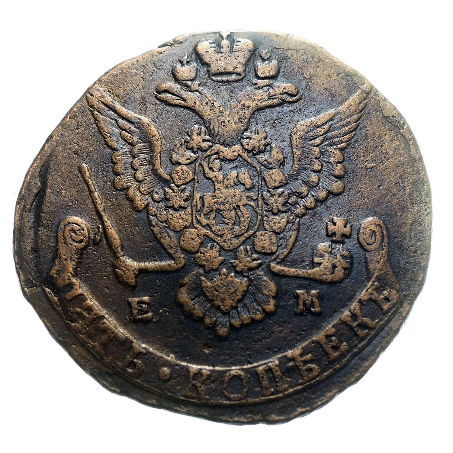Moneta jak na zdjęciu. Bardzo ładna, niepowycierana, szczegóły zachowane, na awrsie ostał się jeszcze śladowy połysk, stan II/II- (XF45/40). Miedź, waga 50,74 g. Katalog: Bitkin 627.