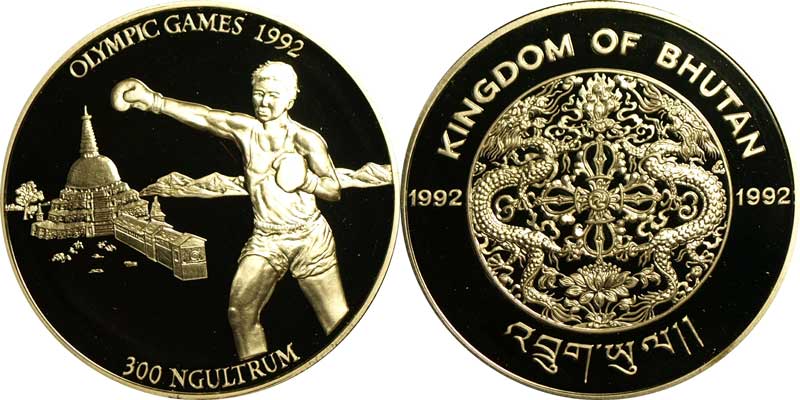 M03476 300 Ngultrum 1992 rok Bhutan Olimpiada Boks