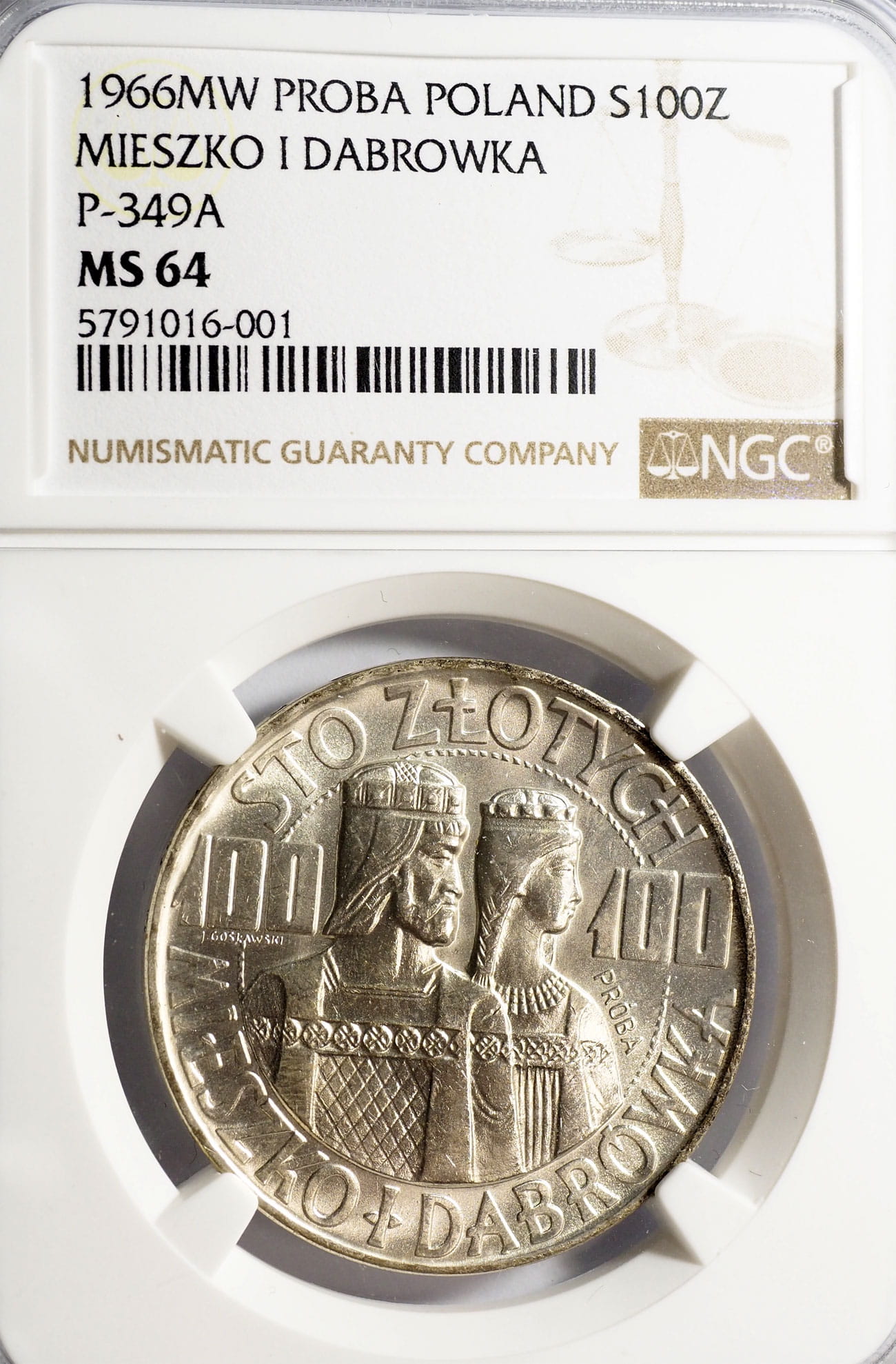 P0143 100 Złotych 1966 rok Polska Mieszko i Dąbrówka próba MS64